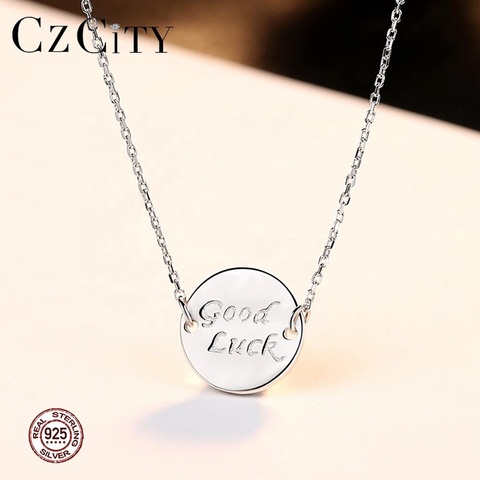 قلادة نسائية من الفضة الخالصة من CZCITY, قلادة سادة دائرية من الفضة الإسترلينية عيار 925 ، قلادة كلاب بسلسلة مخصصة