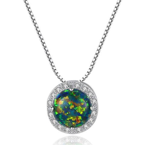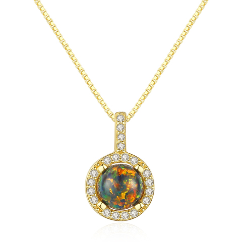 CZCITY CZ intorno alla pietra opale argento di alta qualità in argento Sterling 925 colorato rotondo opale di fuoco collana pendente