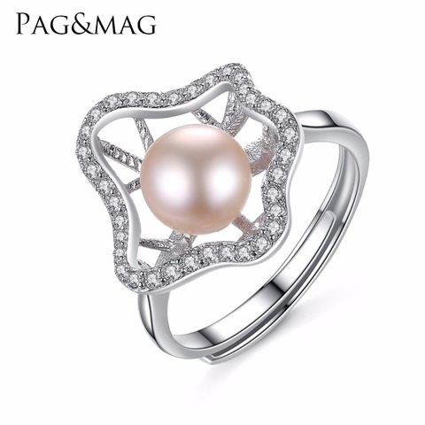 CZCITY本物の925スターリングシルバーナチュラル淡水女性パールキュービックジルコン幾何学的なリングオープナー