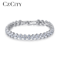 CZCITY美しい925スターリングシルバー女性ブレスレットキュービックジルコニアインレイファッションジュエリー花嫁ブレスレット