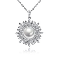 CZCITYラグジュアリーファッションジュエリースノーフレークシェイプ925スターリングシルバーナチュラル淡水パールペンダントネックレス